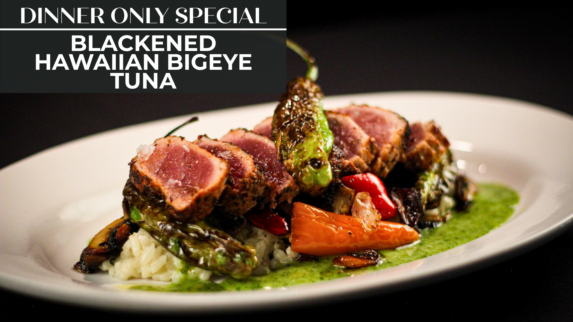 Line Caught • Sushi Grade • Creole Spiced • Roasted Wild Mushrooms • Shishito Peppers • Charred Baby Peppers • Parmesan Risotto • Cilantro Lemon Butter